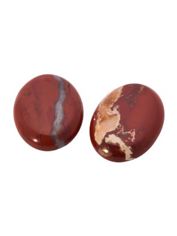 Red jasper is a variety of chalcedon, a microcrystalline form of silica (SiO2). Its intense red color is due to the presence of hematite inclusions, an iron ore.
